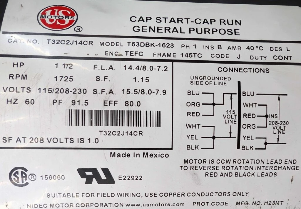 Single Phase Conversion Kit for ½ HP and ¾ HP Bridgeport M-Head Motor | M83SP